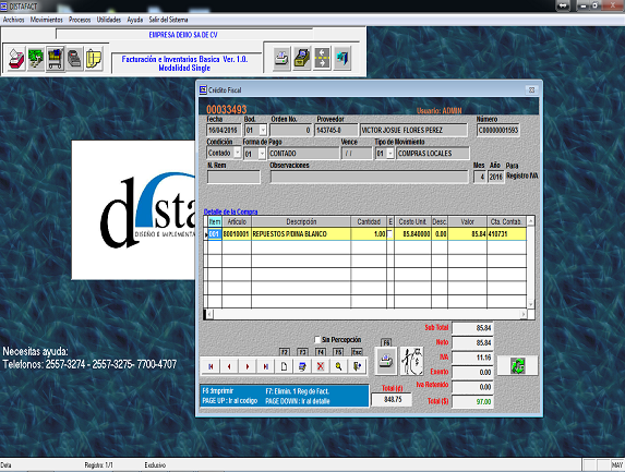 • Atención personalizada: un representante de DISTA SOFT, se desplaza hasta su empresa para capacitarlo en la correcta utilización de DISTAFACT.